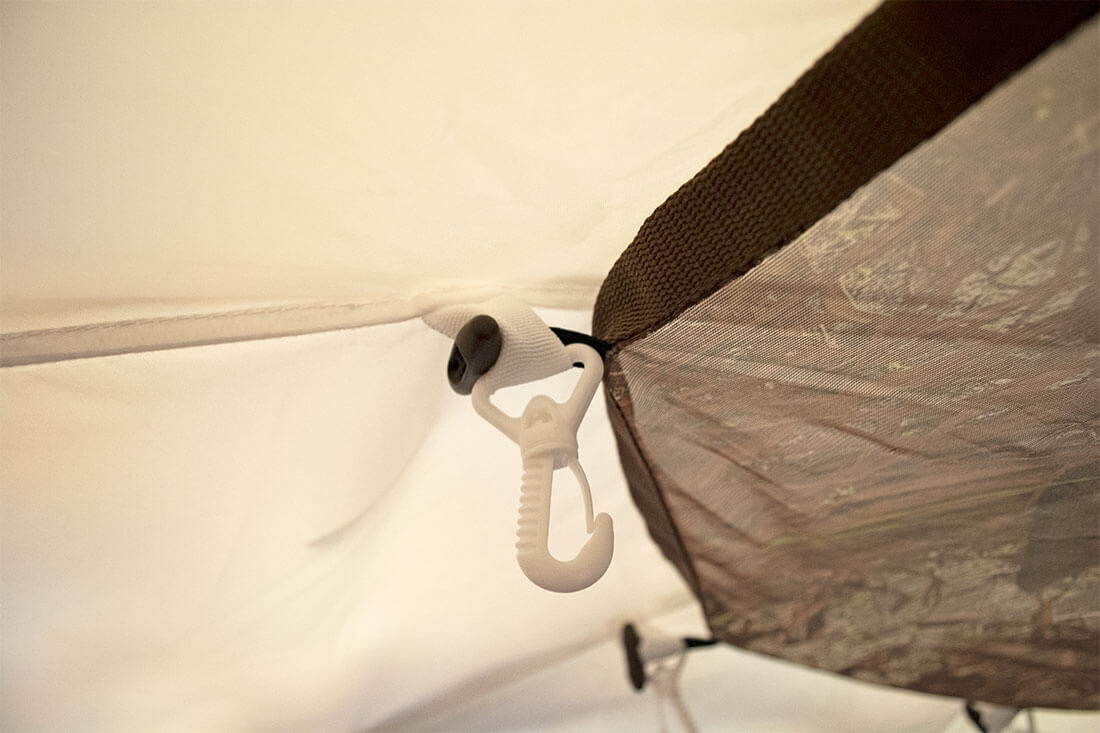 - Карабины на внутреннем тенте для сушки вещей или крепления фонарика.