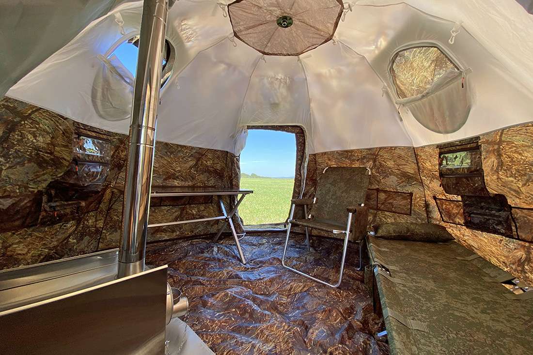 - Два пятислойных окна (бойницы) с ветро-, влагозащитными шторками, москитными сетками;