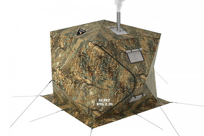 Берег Куб 2.20 — универсальная быстросборная палатка для организации походной бани, шатра, а также для рыбалки и охоты в зимний период. Баня-палатка Куб 2.20 оснащена надежным алюминиевым каркасом и плотным внешним тентом из влагоотталкивающего материала. Комплектация палатки включает: 2 многослойных входа, 2 многослойных окна, 2 кармана с отделениями для личных вещей, термостойкую разделку дымохода 90 мм. для вывода трубы.