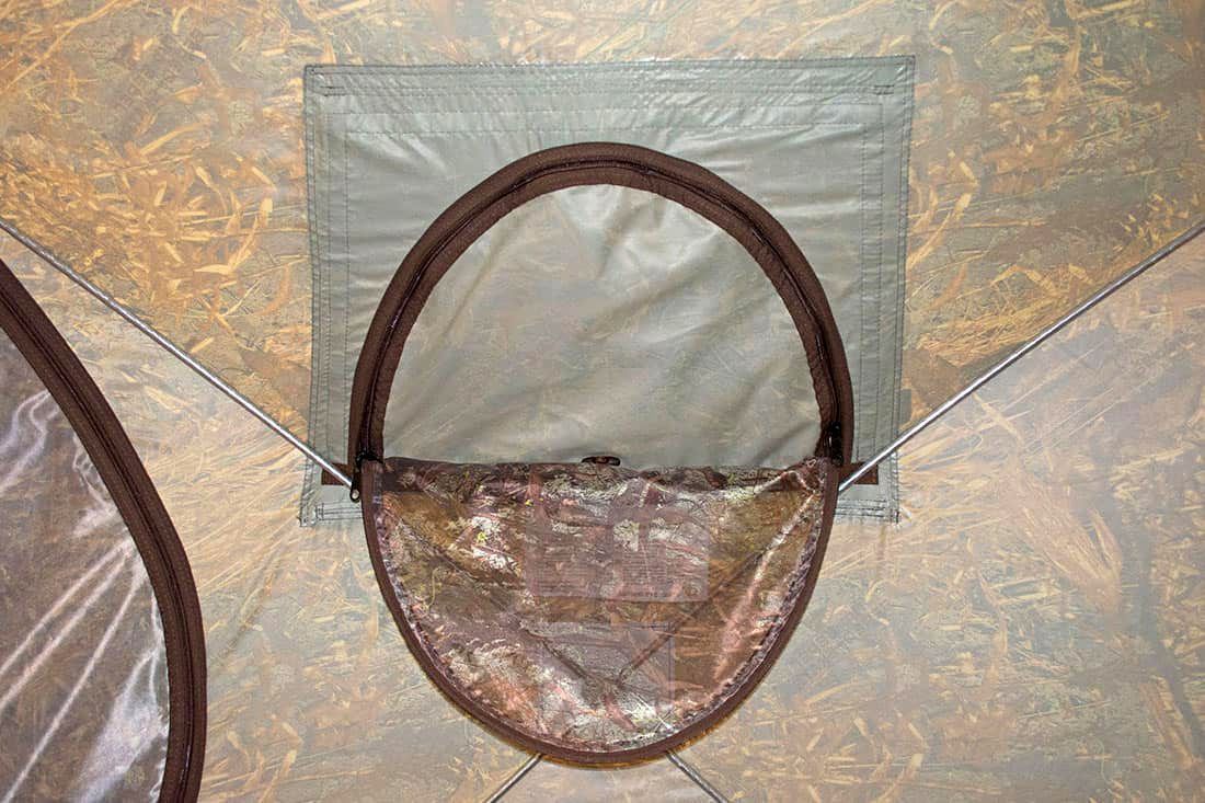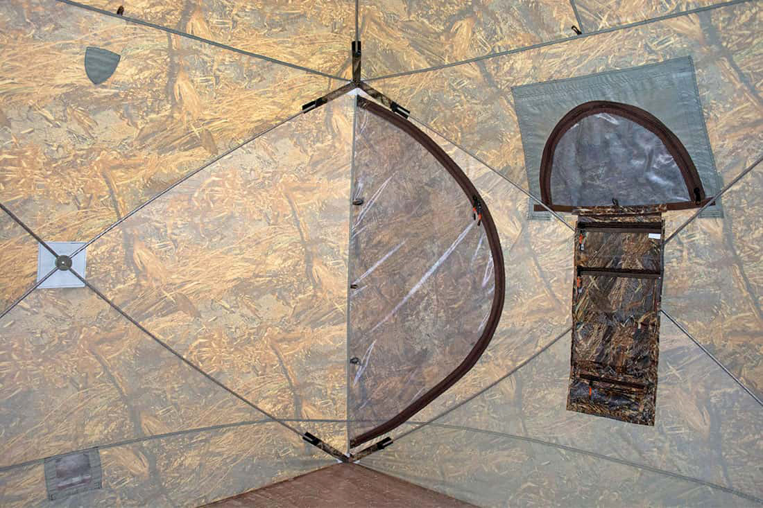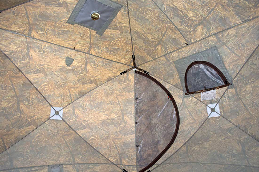- Многослойные окна палатки Куб 2.20 состоят из москитной сетки и клапана внешнего тента на молниях и морозостойкого заполнения из прозрачной силиконовой пленки, выдерживающей температуру от +50 до -50 °С.