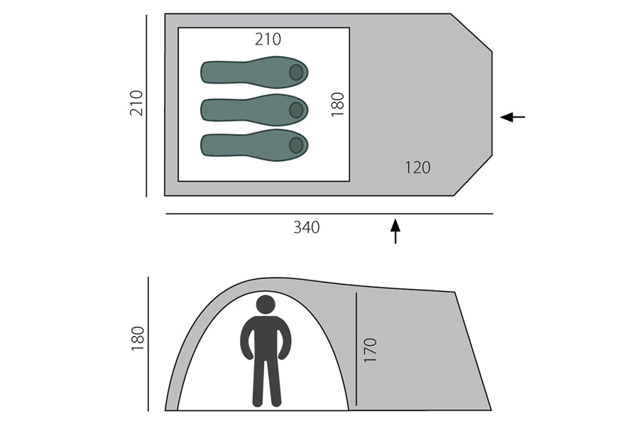 BTrace Element 3 — трехместная палатка с комфортным внутренним пространством и вместительным тамбуром. Большая высота позволяет находиться в палатке стоя, а просторный тамбур удобно поместит множество вещей. Подходящий выбор для отдыха в кемпинге, загородных поездок или автопутешествий.