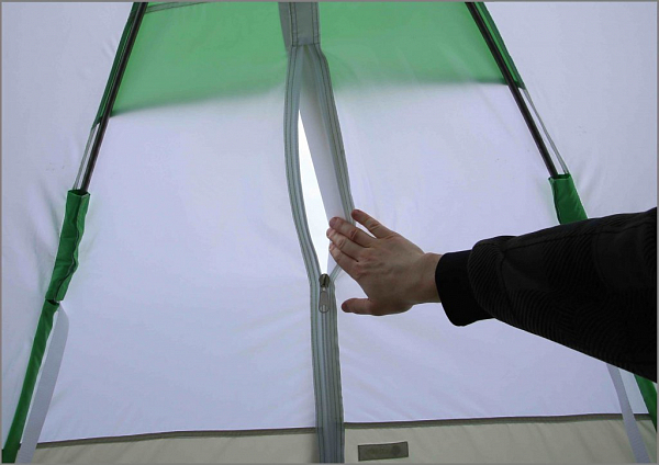Отличная палатка, разобрать и собрать минутное дело, очень удобно что двойная юбка, надежные замки. рыбачим в ней как правило в троём очень комфортно!