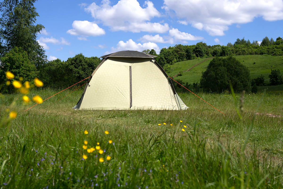 - К данной модели туристической палатки вы можете приобрести дополнительную опцию - пол из полиэтилена низкого давления HDPE, что придает ему высокую прочность, ударную вязкость, низкий коэффициент трения и большую износостойкость. По низу палатки тент оборудован юбкой.