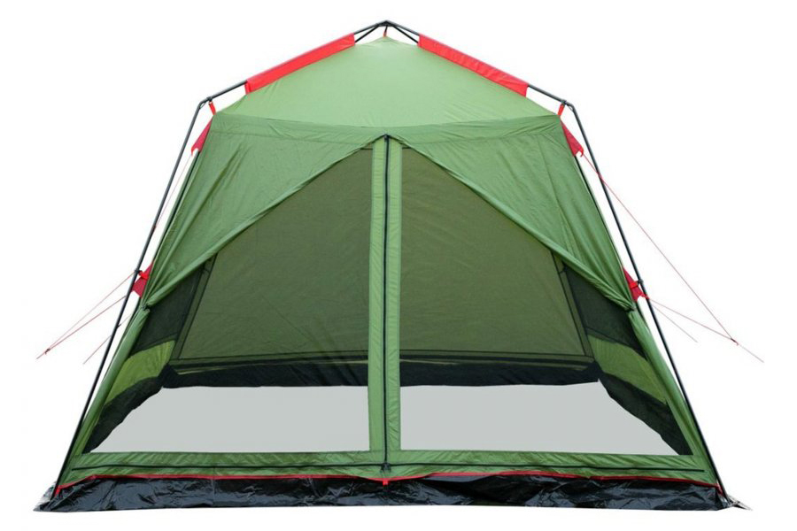 Шатер-тент кемпинговый Tramp Lite Bungalow зеленый — облегченный кемпинговый тент-шатер Tramp Lite BUNGALOW модель TLT-015.06 четырехгранной формы с 2-мя входами на стальном каркасе идеально подходит для отдыха на открытом воздухе в летнее время. Спасает от легкой непогоды, палящего солнца и насекомых.