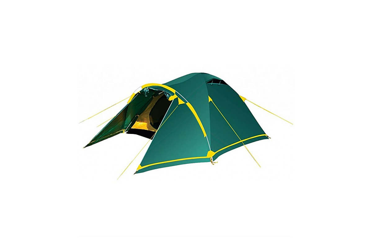 Универсальная палатка Tramp Stalker 3 V2. Трехдуговая модель конструкции "полусфера" с просторным тамбуром, двумя входами и снежной юбкой по периметру внешнего тента. Время использования: весна, лето, осень и ранняя зима. Назначение: пеший и горный туризм.