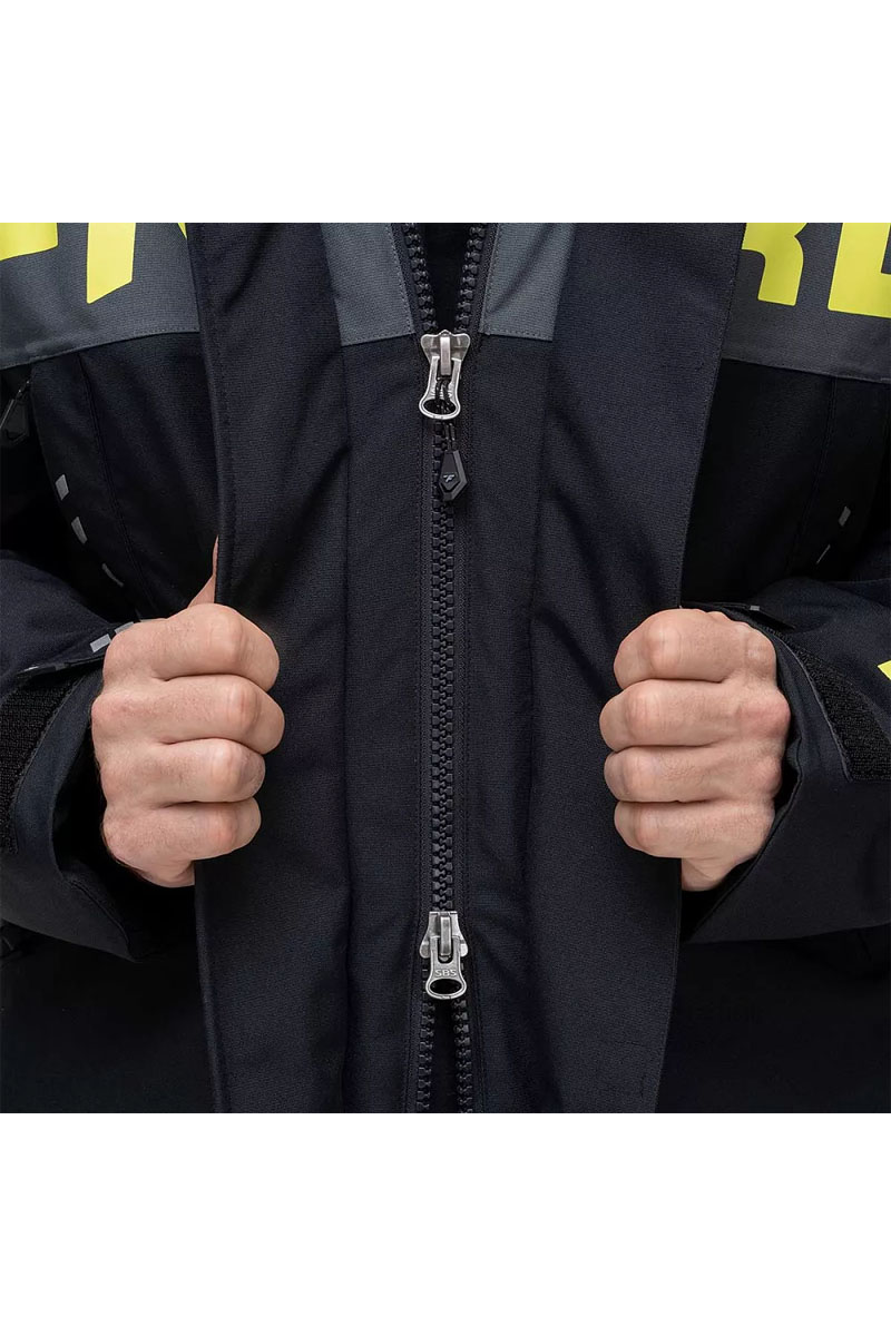 - Центральная двухзамковая молния с ветрозащитной планкой.