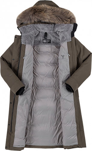 Качественный гусиный пух SmartDown c Fill Power 700+, вставки синтетического утеплителя и отделка длинноворсовым флисом обеспечивают высокие теплоизолирующие свойства этого пальто. Важную роль в обеспечении высокого уровня комфорта играют удобные внутренние манжеты из теплого трикотажа, а также удобный капюшон. Пальто хорошо облегает фигуру и надёжно защищает от ветра, снега и холода, а за счет большой длины позволяет использовать более легкие штаны.