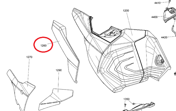 Оригинальная деталь BRP. Правая нижняя панель для снегохода BRP Ski-doo 2008-2016 на платформе REV-XP.