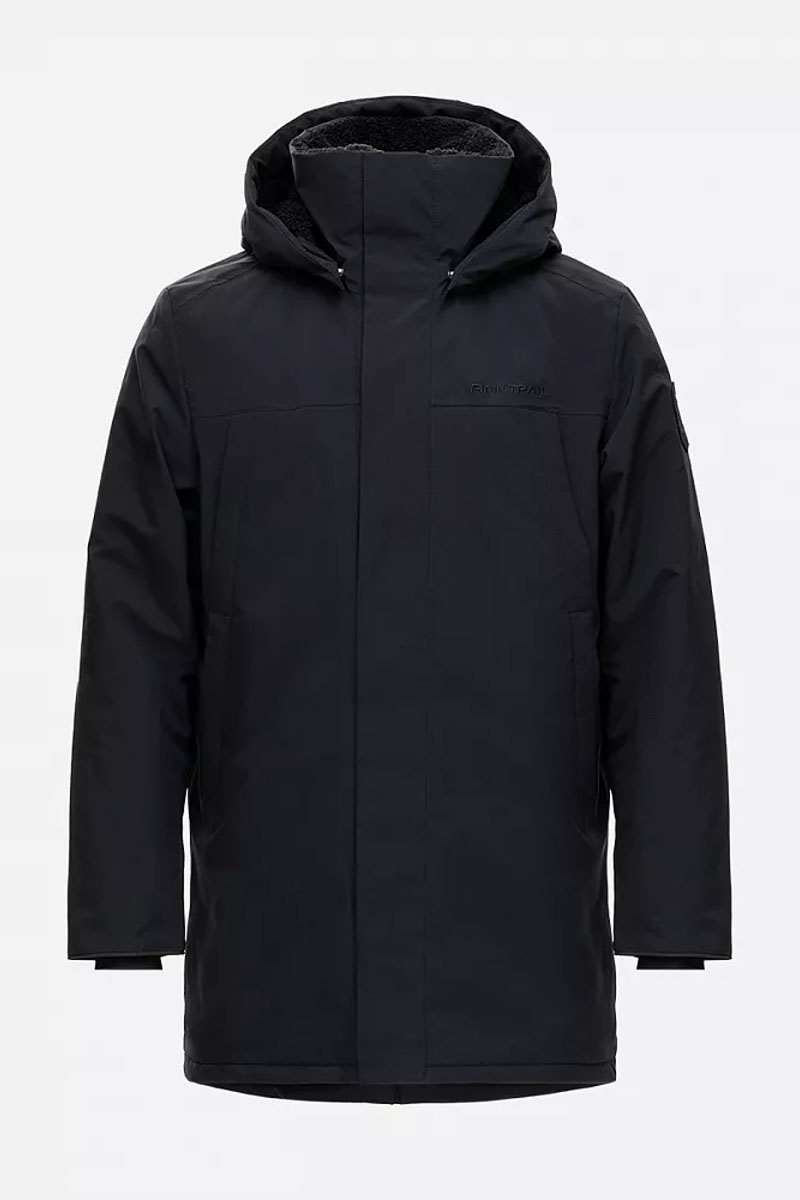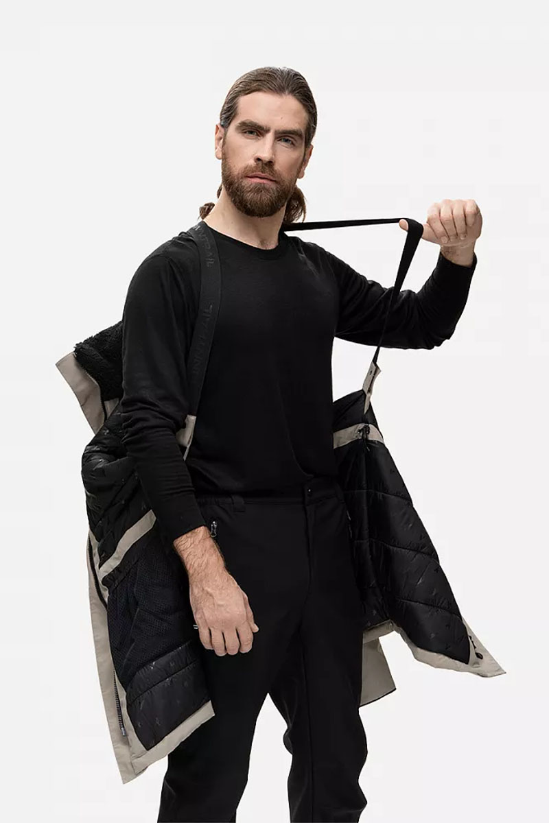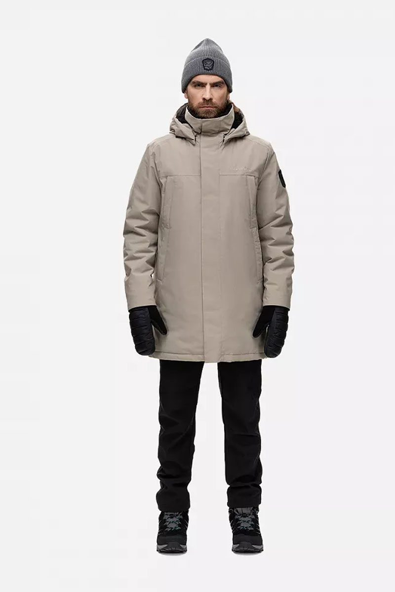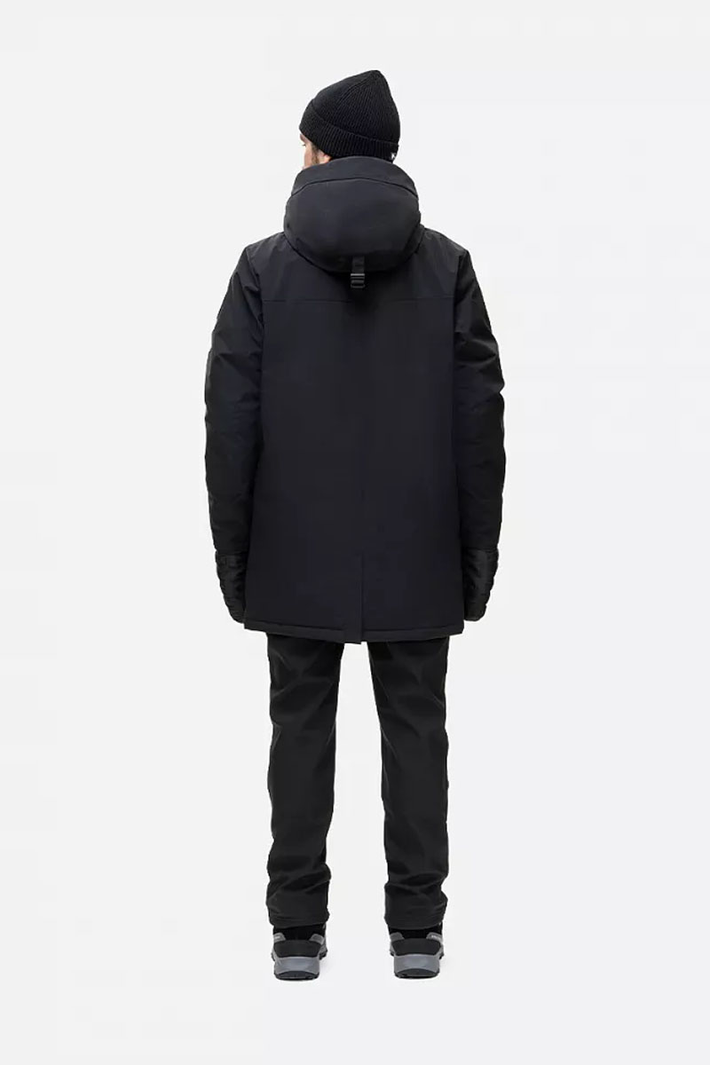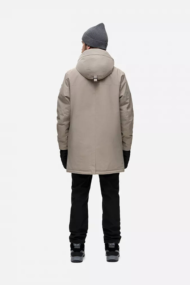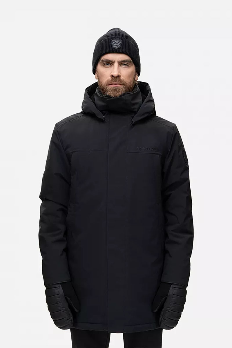 Мужская зимняя парка с удлиненным кроем. Модель предназначена для использования в городских условиях и во время путешествий. Конструкция предполагает эксплуатацию в холодное время года. В качестве утеплителя используется синтетический материал. Капюшон куртки является съемным и регулируемым. Для переноски в сложенном виде предусмотрены внутренние наплечные ремни. Модель имеет шесть функциональных карманов.