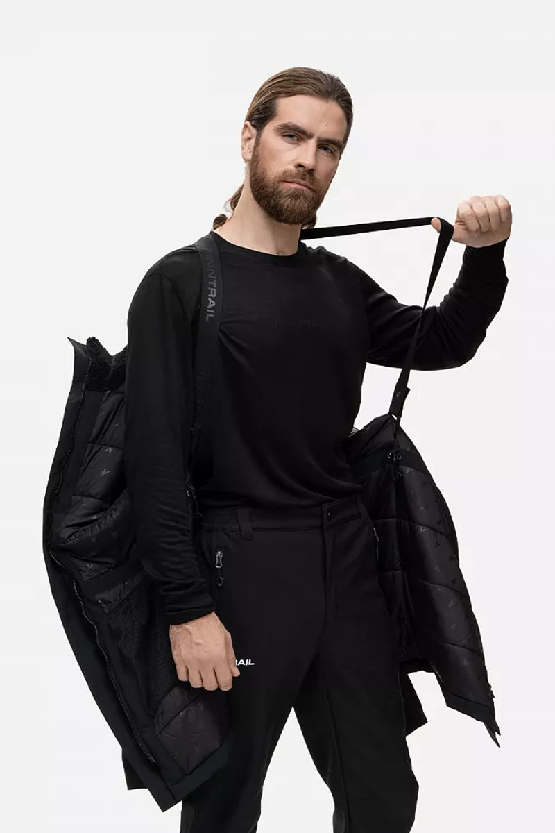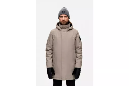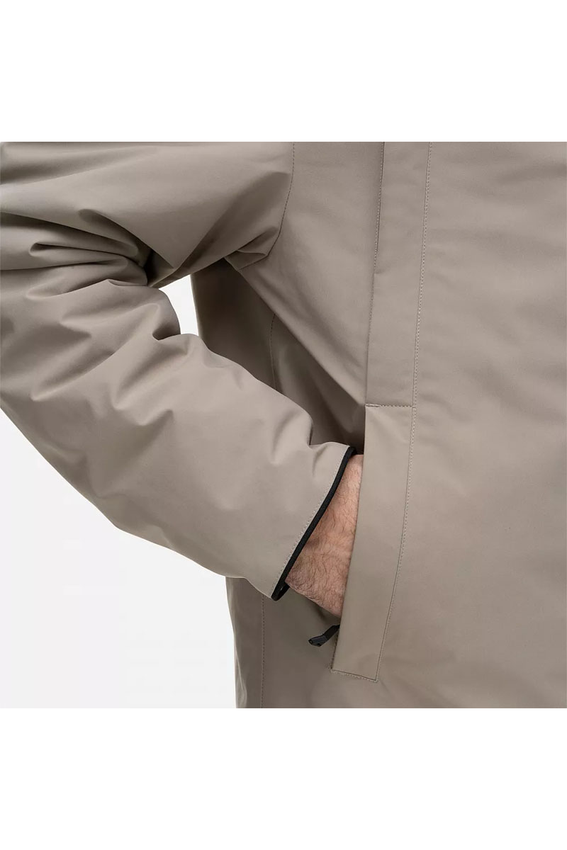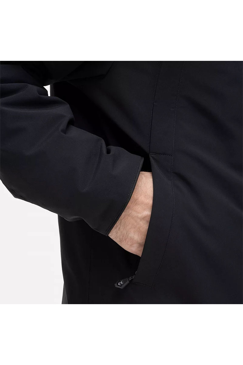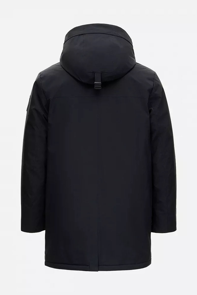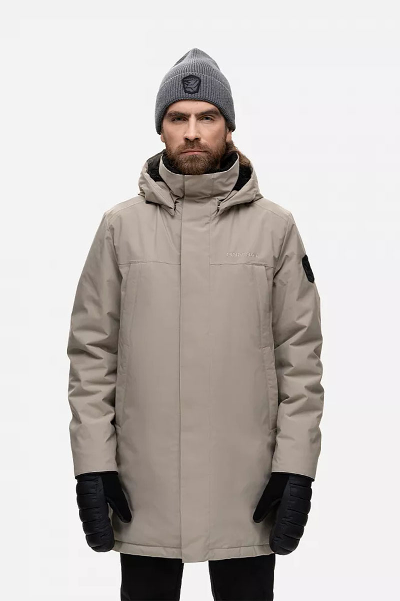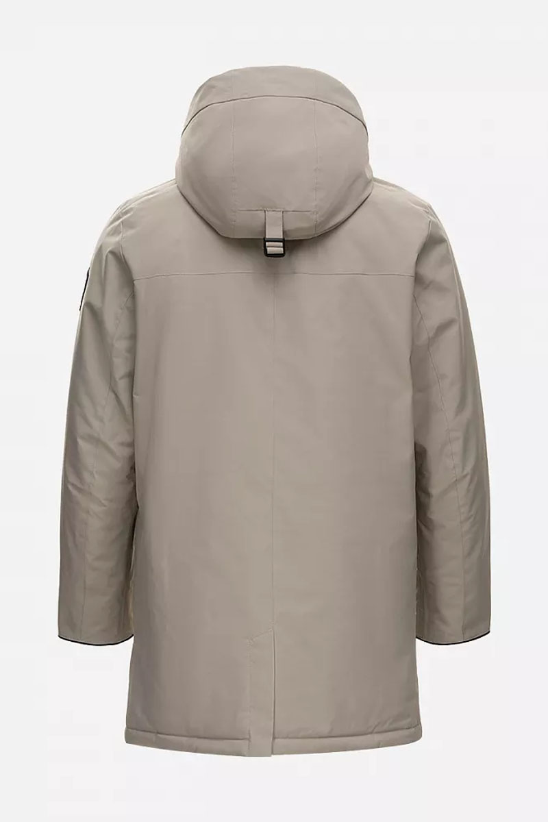 Мужская зимняя парка с удлиненным кроем. Модель предназначена для использования в городских условиях и во время путешествий. Конструкция предполагает эксплуатацию в холодное время года. В качестве утеплителя используется синтетический материал. Капюшон куртки является съемным и регулируемым. Для переноски в сложенном виде предусмотрены внутренние наплечные ремни. Модель имеет шесть функциональных карманов.