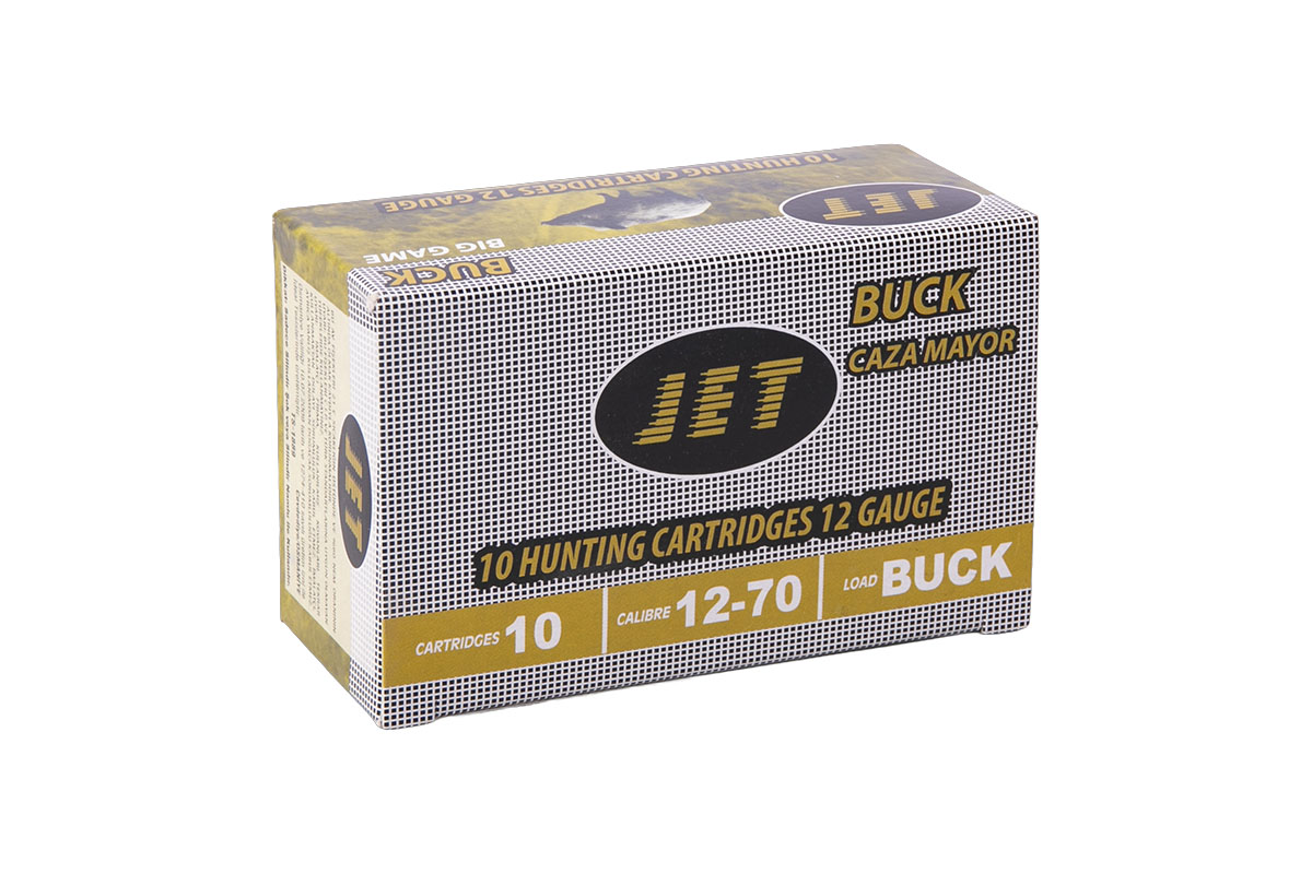 Патрон JET калибра 12/70 снаряжен картечью Buck Shot. Патрон предназначен для стрельбы из гладкоствольного оружия. Продукция производится в соответствии с техническими условиями. Патроны используются для спортивной стрельбы и охоты. Конструкция патрона включает гильзу, капсюль, пороховой заряд и снаряд.Характеристики