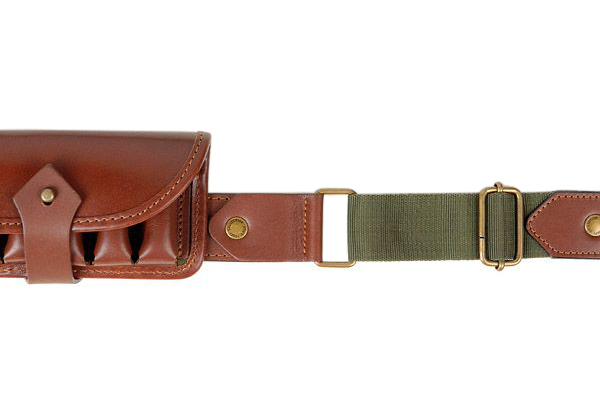 Патронташ комплектуется подсумками под 12-16 калибр. Клапаны выполнены из натуральной кожи и изнутри продублированы вторым слоем кожи. Внутренняя часть патронташа в месте повышенного трения продублирована износостойким материалом Кордура, что увеличивает срок службы изделия. Подсумки одеты на ремень из натуральной кожи, регулируемый по длине. Надежная фиксация клапанов осуществляется с помощью ремешка и металлической пукли. При производстве патронташа использована итальянская фурнитура.
