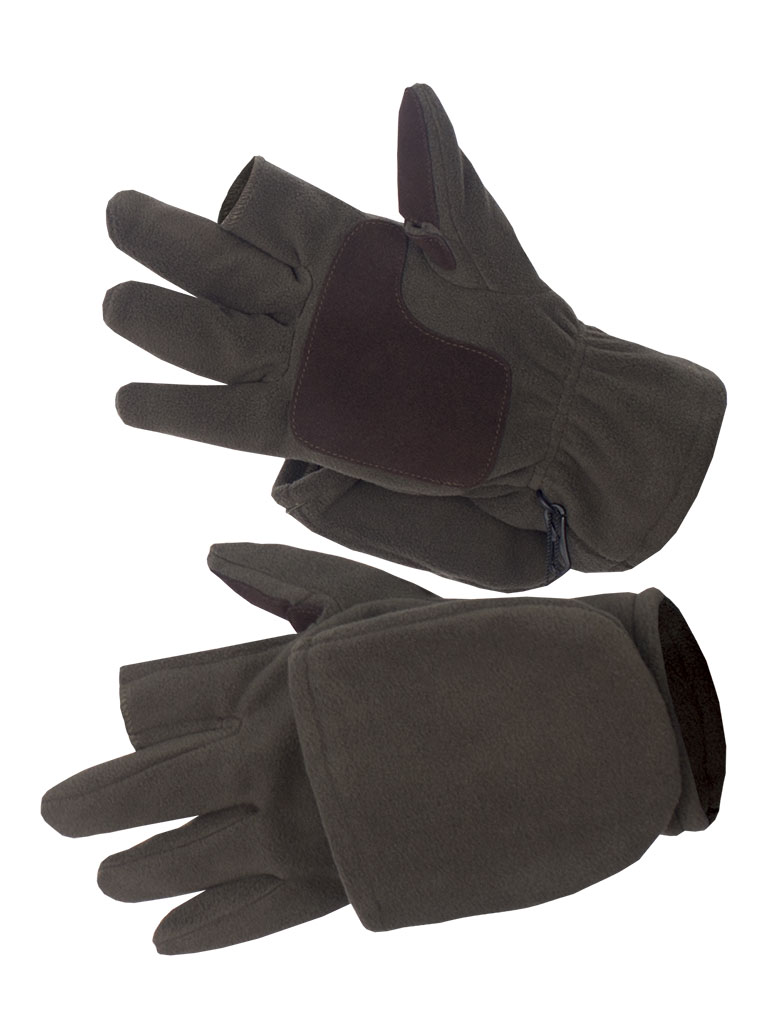 Перчатки-варежки Росомаха флисовые Тундра предлагают два способа использования: с надетой верхней частью, закрывающей пальцы (варежки), и с откинутой верхней частью (перчатки).