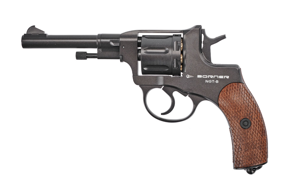Пистолет пневматический BORNER NGT-B Black кал. 4,5 мм – реплика легендарного револьвера Нагана с исторически точным дизайном и газобаллонной системой. Металлическая конструкция, гладкий ствол и фальшпатроны с BB-шариками создают аутентичный опыт стрельбы. Скорость пули – до 110 м/с, режим полуавтоматической стрельбы и удобное заряжание. Отличный выбор для плинкинга и коллекционирования.