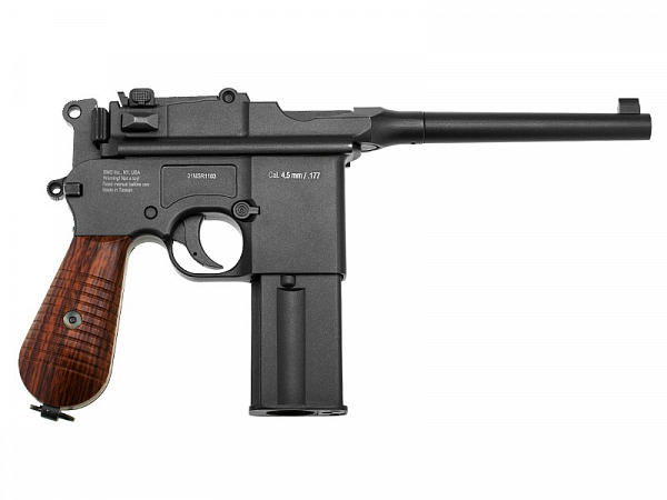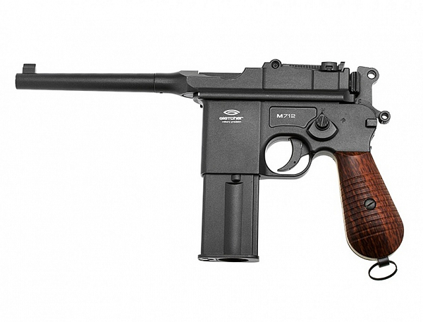 Новинка 2014 г. - пневматический газобаллонный пистолет Gletcher M712 (Маузер) является отличным дополнением серии легендарных пистолетов американской компании SMG Inc. Полностью выполненный из металлического сплава, он по своим массогабаритным характеристикам приближен к своему боевому прототипу. Пневматическая версия знаменитого немецкого пистолета образца 1932 года. Воспроизведены массогабаритные характеристики оригинала. Имеется режим стрельбы очередями. Система Blowback, обеспечивающая движение затвора, для имитации отдачи и большего реализма при стрельбе. Скрытый поджимной винт баллона, обеспечивающий большую визуальную схожесть с оригиналом.