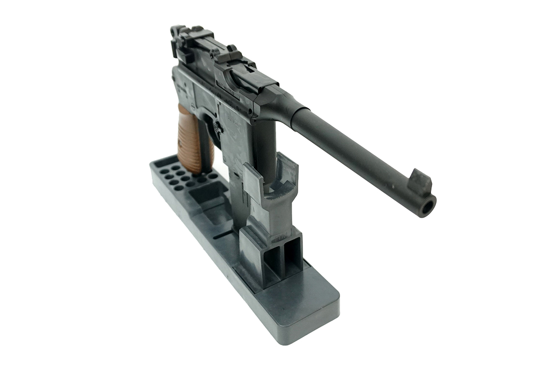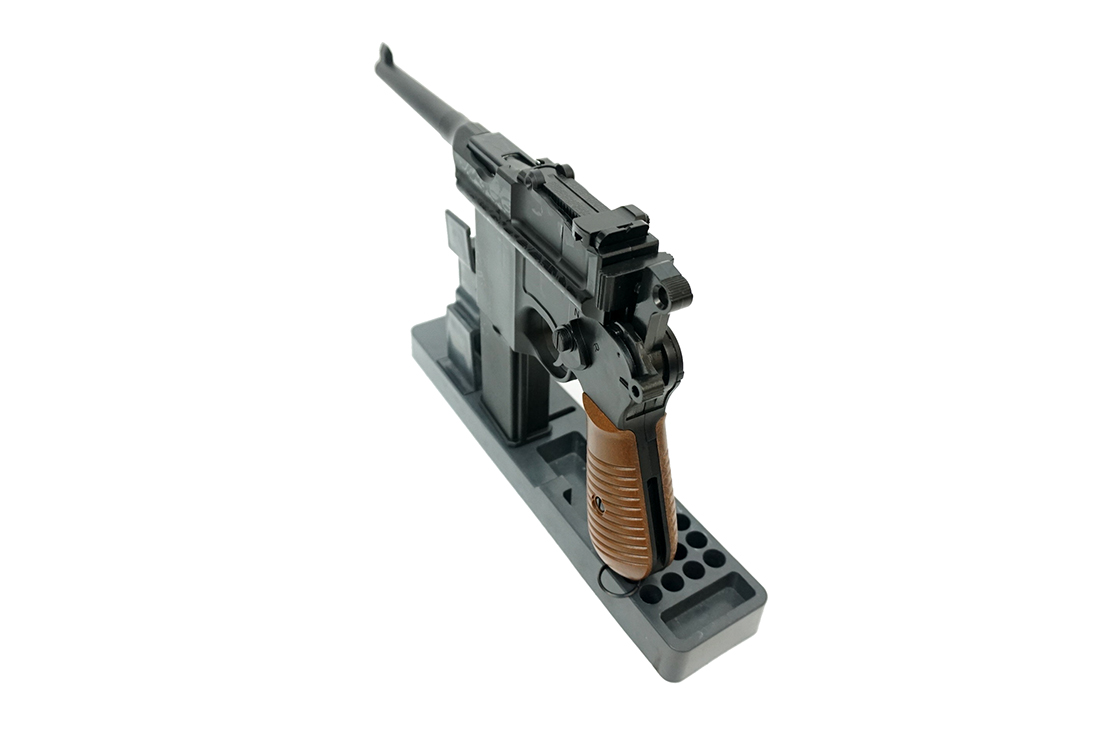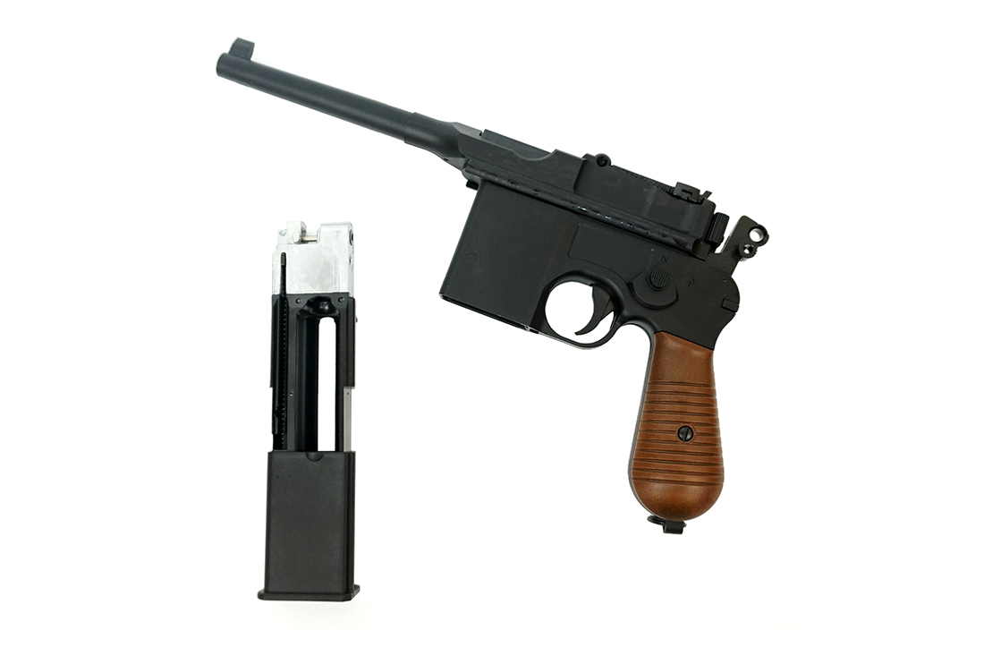 Корпус пневматического пистолета Umarex C96 в основном пластиковый, потому масса модели меньше таковой у огнестрельного прототипа. Но для пневматического пистолета, который предназначен именно для развлекательной стрельбы, металл и пластик в данной модели сочетаются оптимально для балансировки пистолета. Съёмный магазин и подвижный затвор пистолета металлические. Предохранитель функциональный, очень удобный. Располагается он возле курка и внешне сходен с курком пистолета. Переводчик огня, присутствующий на левой стороне рамки пистолета - это имитация, он отлит из пластика с корпусом вместе.