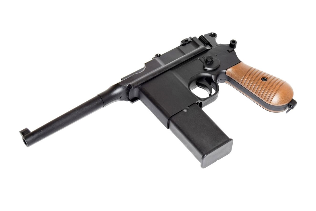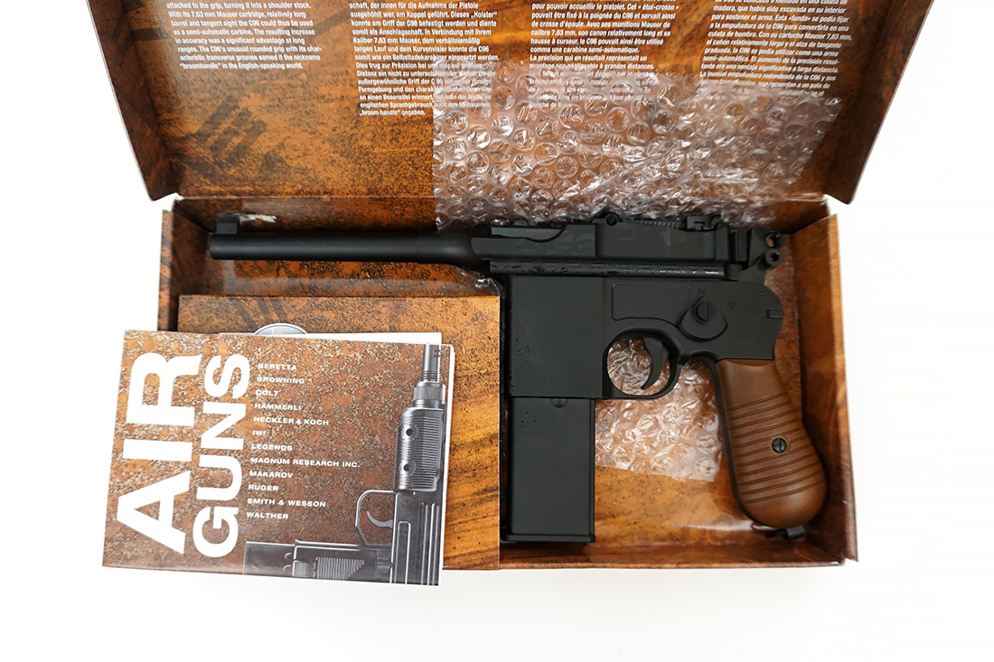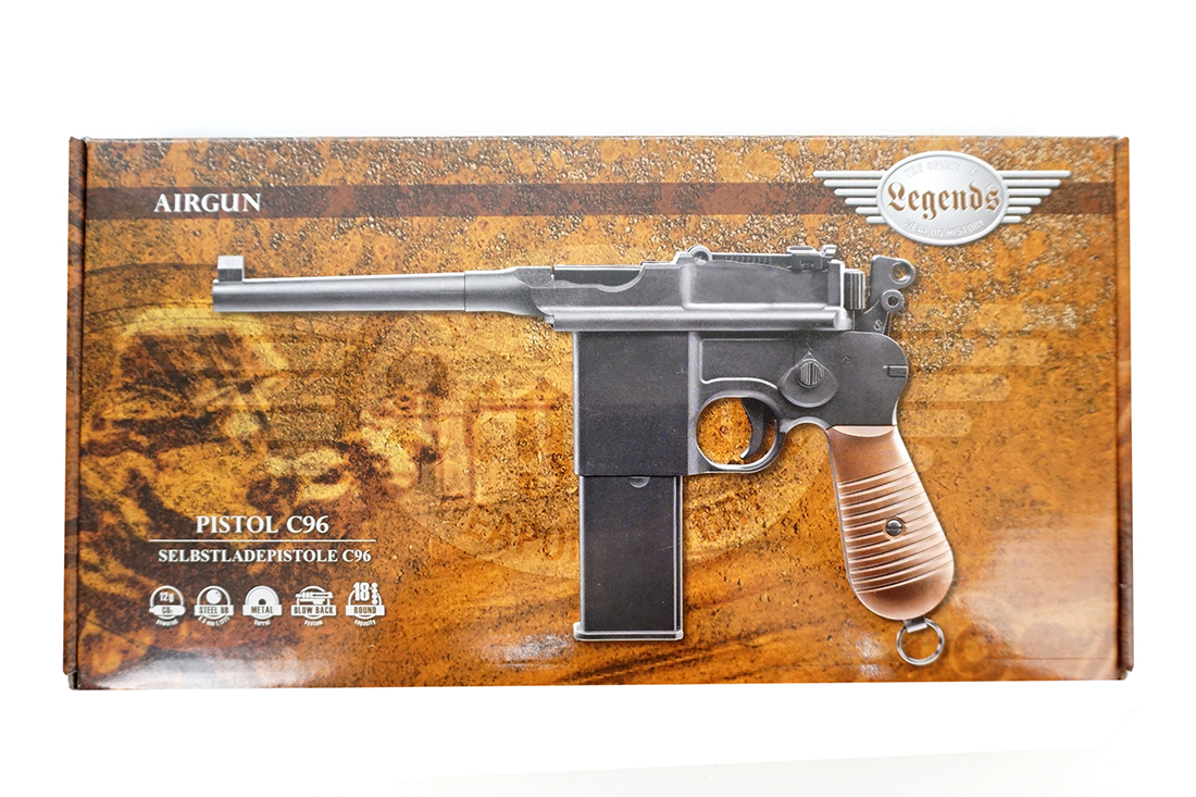 Пневматическая модель пистолета Umarex Legends C96 является копией незабываемого, поистине легендарного пистолета Маузер С96. Данное оружие восхищает коллекционеров и спортивных стрелков с момента своего рождения в 1896. У этой пневматической модели скорость вылета шарика составляет максимум 128 м/с. Прицельными приспособлениями служат неподвижная мушка и прицельная регулируемая планка. Прицел сделан аналогично огнестрельному прототипу, т. е. у пистолета секторный прицел, нанесены деления от 50 м до 1000 м.