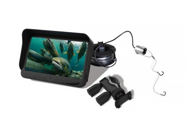 Новая подводная видеокамера Сом c широкоформатным 4,3” дисплеем позволит наблюдать рыбу на глубине до 30 метров. 480 × 272 пикселей, кабель 30м, обзор 140 градусов, 6-ламповая инфракрасная подсветка позволит наблюдать подводный мир и в темноте и в мутной воде. Литиумный АКБ 4,2В держит заряд более 5 часов непрерывной работы прибора. 9 языков (вкл русский), вес 143г., размер 124x84x46мм.
