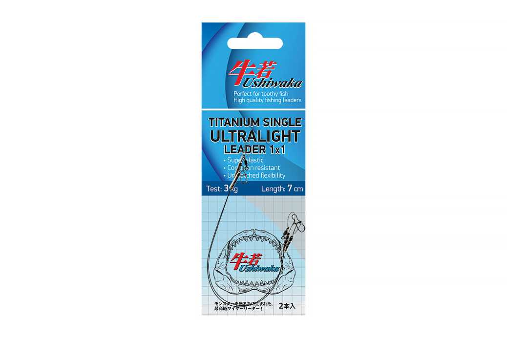 Титановые поводки от японского бренда Ushiwaka производятся из материалов высокого качества и отличаются прочностью и эластичностью. Поводки Ushiwaka не деформируются после изгиба и сохраняют идеально прямую форму. Титан выделяется среди других материалов несколькими важными преимуществами. Во-первых, такой поводок не влияет на плавучесть воблеров и оказывает минимальное влияние на анимацию приманки за счет своей легкости. Во-вторых, поводки из титана обладают высокой гибкостью и упругостью. В-третьих, они не ржавеют. Поводок Ushiwaka Titanium Single Ultralight UTSUL1х1 из одножильного титанового материала предназначенные для ловли приманками класса «Ультралайт». Сверхмалый вес поводков и компактные размеры не влияют на игру самых лёгких приманок. Титановые поводки Ushiwaka прочные, не деформируются после изгиба и не подвержены коррозии.