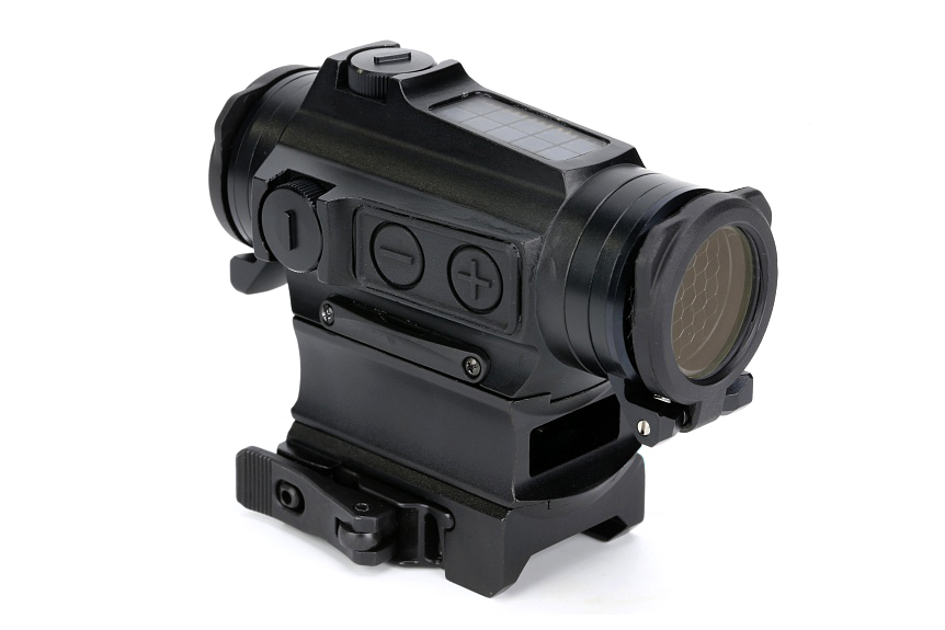 - Три режима работы.По умолчанию прицел находится в автоматическом режиме и «питается» от внутренней батарейки и фотоэлемента, выбирая источник питания в зависимости от окружающего освещения. Яркость метки регулируется автоматически: чем больше света, тем ярче метка. В ручном режиме питание поступает только от батарейки, а яркость регулируется вручную кнопками «+» и «-». В «спящий режим» прицел переходит после 10 минут бездействия, но включается при малейшем движении.