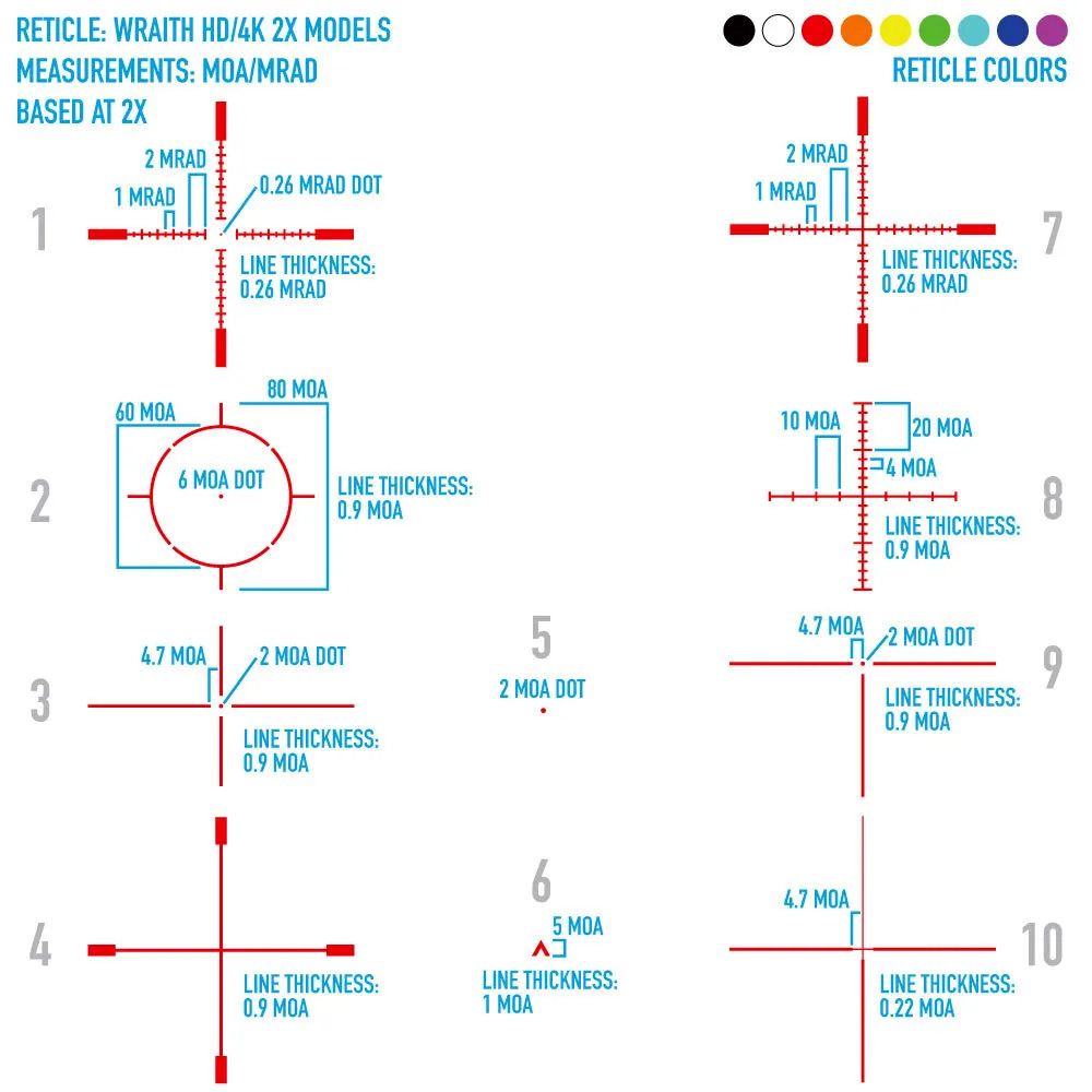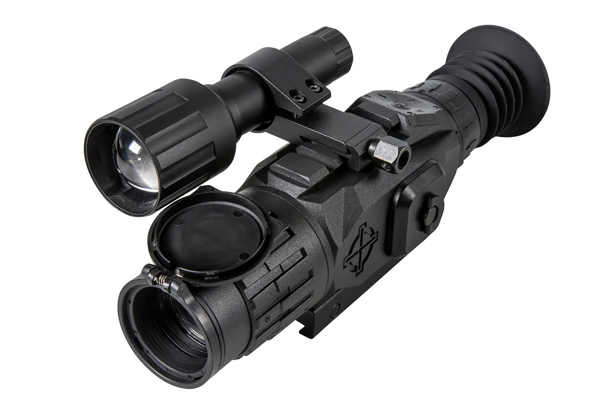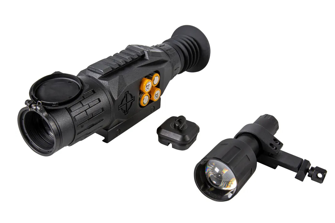 В комплект Sightmark Wraith входит съемный ИК-осветитель с длиной волны 850 нм предлагающий улучшенное качество изображения на расстоянии до 180 метров при работе в ночном режиме. В настройках прицела можно переключатся между 10-ю вариантами прицельной сетки и 9-ю вариантами различных цветов для более комфортного прицеливания и повышения точности.