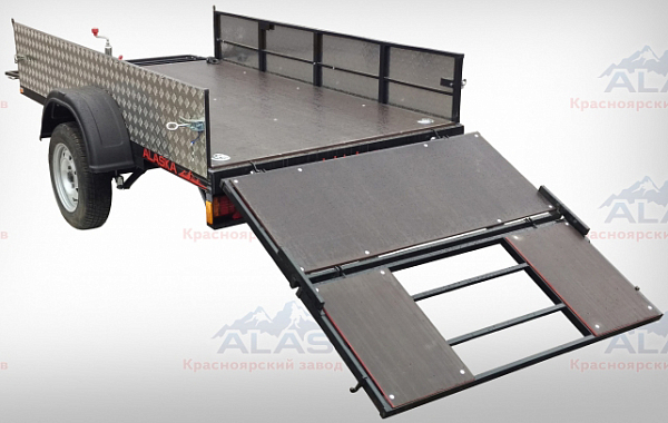 Прицеп предназначен для перевозки различных грузов. В том числе идеально подходит и для перевозки квадроцикла. Электрическая проводка прицепа надежно защищена в самых «уязвимых» местах. Для более высокой надежности и управляемости мы совместили «V» и «I» образные виды дышла в одно. Откидывающиеся передний борт из алюминия практичный и имеет эстетичный внешний вид.. Кузов прицепа выполнен из качественного металла, пол из влагостойкой фанеры. Опорное колесо в комплекте и 4 петли крепления груза в комплекте.