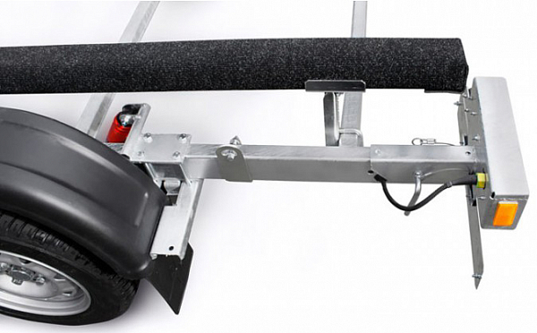 - Оцинкованное съёмное дышло из стального замкнутого профиля установлено на болтовых соединениях, что позволяет при необходимости отсоединить его от рамы и тем самым уменьшить занимаемую площадь в гараже или на стоянке.
