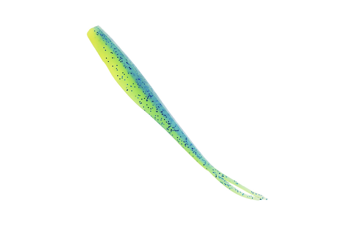 Данная силиконовая приманка имеет длину 12,5 сантиметров. Она изготовлена из мягкого материала, демонстрирующего устойчивость к механическим воздействиям. Конструкция представляет собой виброхвост с тонким раздвоенным хвостом. В воде хвостовая часть создает низкочастотные колебания. Приманка обладает положительной плавучестью и всплывает во время пауз в проводке.