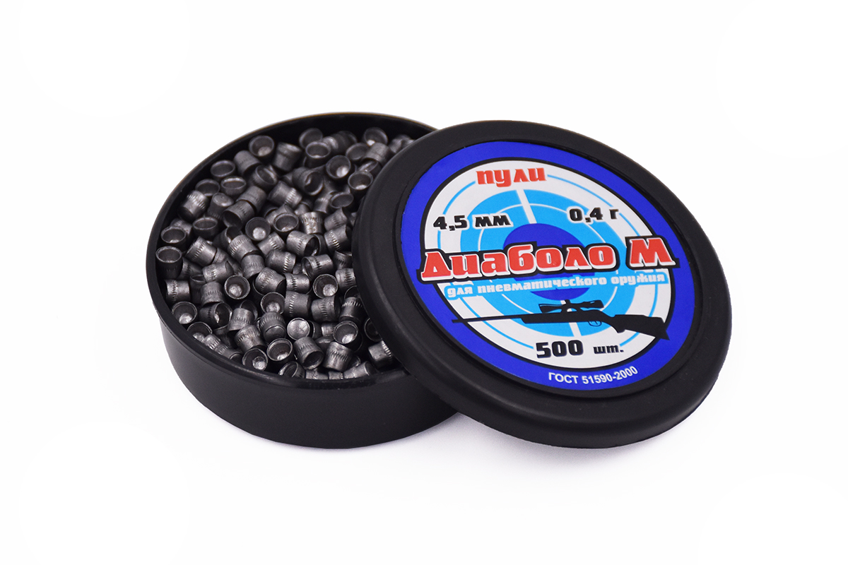 Пули Диаболо М калибра 4,5 мм - колпачковые легкие свинцовые пули. Отличаются большим процентом кучности и эффективностью в сохранении энергии на дальних дистанциях. Благодаря точной развесовке пули, обеспечивается минимальное трение пули о стенки ствола оружия и высокая устойчивость боеприпаса в полёте. В упаковке 500 штук, средний вес 0,40 грамм.