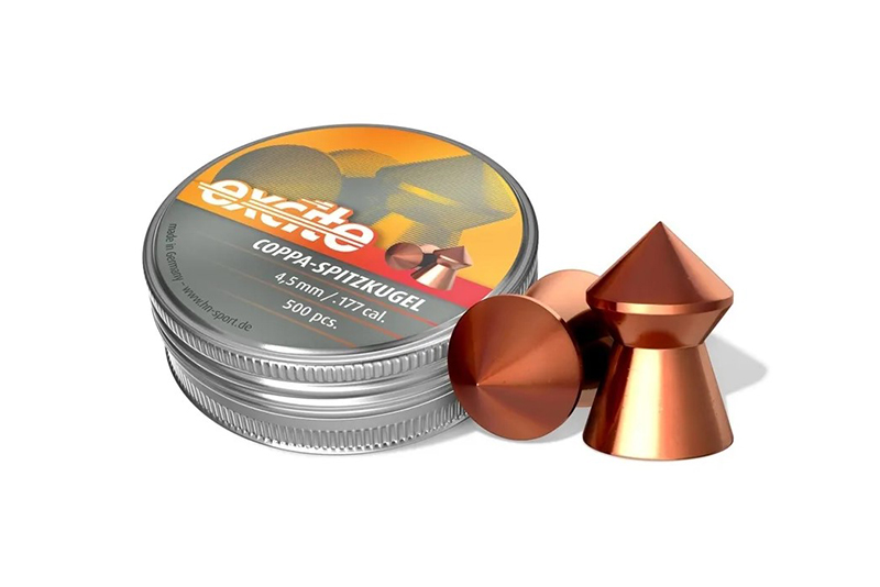 Пули Н&N Excite Coppa Spitzkugel –легкая, покрытая медью остроконечная пуля для плинкинга, хобби и стрельбы из C02-пистолета. Пуля покрыта медью, что обеспечивает увеличение твердости пули на 20%. Пулю отличает малая деформация при стрельбе. Предотвращает освинцовывание ствола.