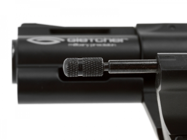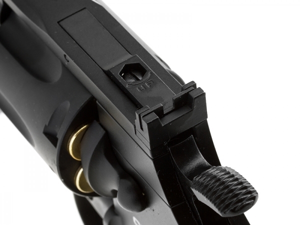 Револьвер пневматический Gletcher CLT B25 оснащен скрытым предохранителем, блокирующим курок. Ударно-спусковой механизм двойного действия (Double Action) обеспечивает стрельбу как самовзводом, так и с предварительным взведением курка. Ухватистая рукоять с резиновыми накладками обеспечивает комфортное удержание при стрельбе. Целик регулируемый. Скрытый поджимной винт баллона обеспечивает большую визуальную схожесть с оригиналом. Фальшпатроны увеличивают реалистичность обращения с револьвером. Откидывающийся барабан дает полную реалистичность заряжания револьвера и извлечения «стреляных гильз».