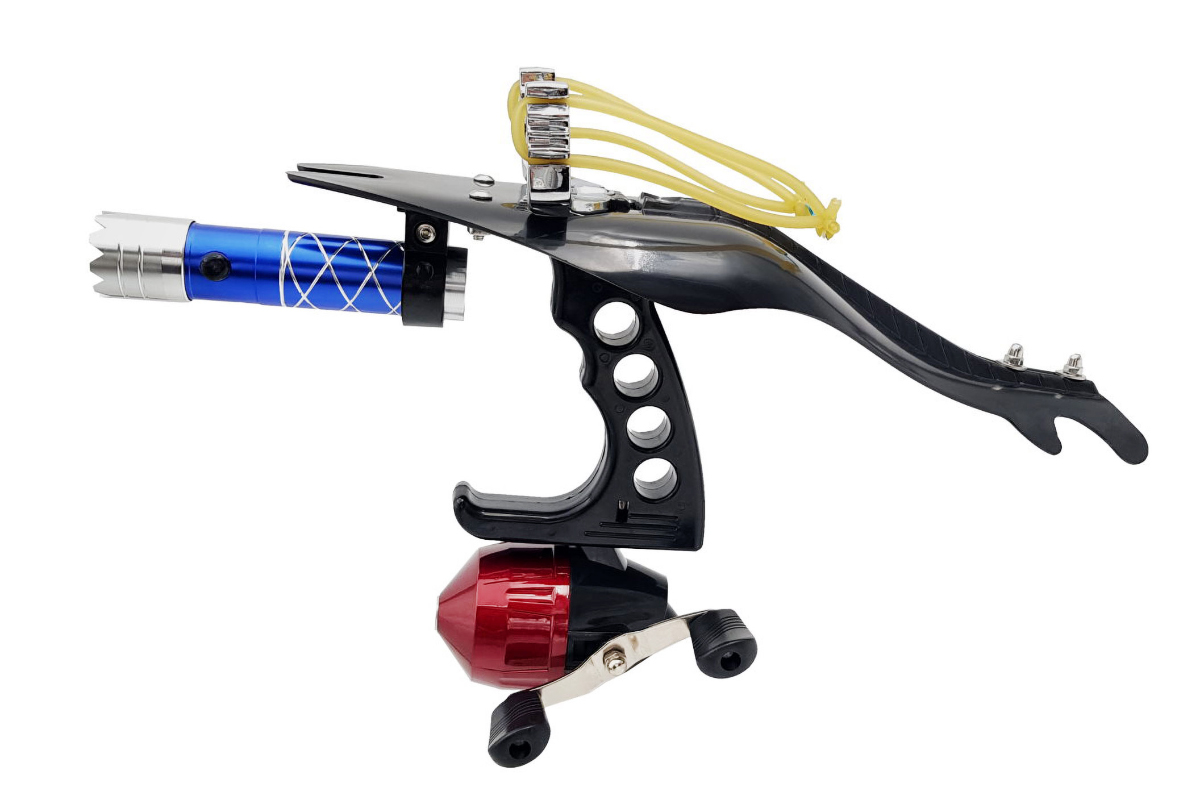Предусматривает установку двойных или тройных жгутов. Имеет жесткую защиту предплечья, выполняющую функцию упора. Конструкция рогатки полностью разборная, набор ключей-шестигранников входит в комплект. Рожки рогатки выполнены из металла, рукоятка из пластика. Катушка крепится с нижней части рукоятки, фонарик с ЛЦУ с передней части.