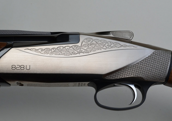 Новинка от компании Бенелли. 828 – номер Урбино в списке объектов Всемирного наследия ЮНЕСКО, а буква «U» использовалась в качестве сокращённого названия герцогства Урбинского, которое в период правления незабвенного Федерико да Монтефельтро стало одним из трёх центров итальянского Возрождения. Таким образом, название «828U» объединяет в себе культурное наследие прошлого и технологические достижения наших дней. Элегантность исполнения «Silver» подчёркивается стремительными очертаниями колодки, украшенной оригинальной гравировкой, которые гармонично сочетаются с линиями ложа. Ружьё оснащено системой дифференцированного поглощения импульса отдачи «Progressive Comfort», состоящей из установленного в полости приклада амортизатора, сменных затыльников и гребней и комплекта проставок (5 для регулировки погиба от 45 до 65 мм с шагом 5 мм, 4 для регулировки отвода на ±6, ±3, ±6 ½, ±3 ½ ), позволяющих выбрать сорок вариантов положения приклада. Комплект сменных затыльников позволяет регулировать длину приклада в весьма широких пределах: от стандартных 375 мм до 385 мм, а при необходимости можно приобрести короткий приклад длиной 365 мм. Неотъемлемой частью системы полного комфорта являются сменные гребни из пенополиуретана, которые не только снижают ударную нагрузку на мягкие ткани лица, но и поглощают возникающую в момент выстрела вредную вибрацию, способную при длительном воздействии привести к повреждению органов внутреннего уха. Механизм запирания представляет собой L-образный клиновой затвор с четырьмя точками скрепления. При закрытой колодке нижний выступ затвора надевается на выступающий фланец ствольной муфты, а его верхняя часть входит в зацепление с двумя массивными крюками, расположенными в верхней части последней. Блок УСМ сделан съёмным для облегчения ухода и регулировки. Накол капсюля осуществляется при помощи лёгких подпружиненных бойков, по которым бьют прямолинейно движущиеся ударники. Взведение последних происходит при помощи затворного ключа. Такая конструкция обеспечивает максимальную компактность, надёжности и быстродействие спуска. Автоматическое переключения ствола происходит за счёт смещения инертной массы под воздействием импульса отдачи. Предусмотрен и ручной селектор, установленный на ползуне предохранителя.- Калибр: 12