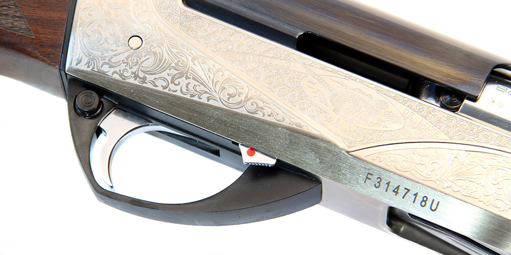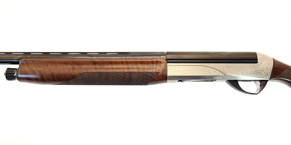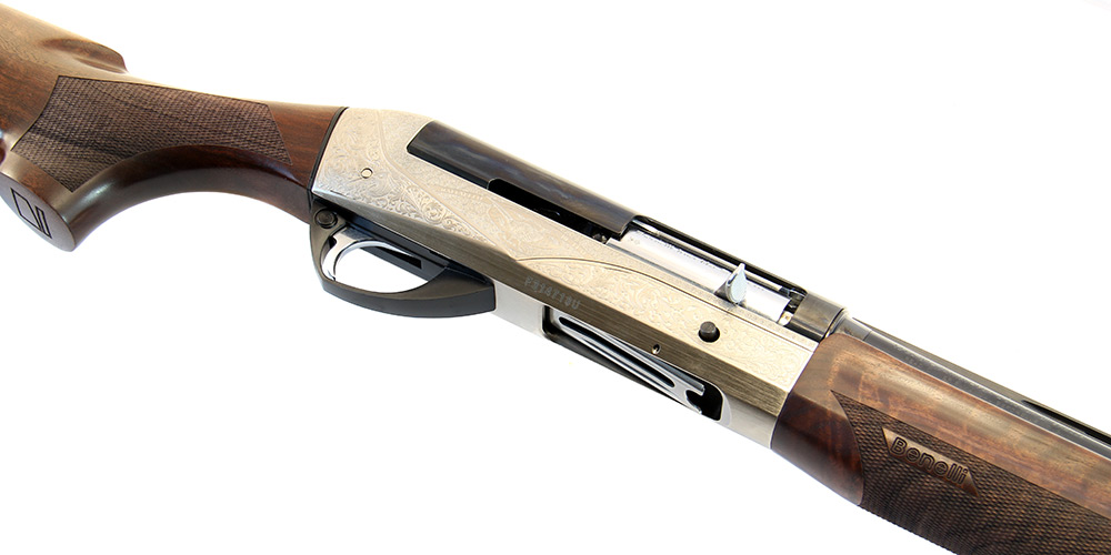 Ружье Benelli Raffaello Deluxe, помимо гениальной механики имеет изысканный внешний вид за счет высокого качества, используемой древесины и четкой гравировки на ствольной коробке. Ствольная коробка ружья, изготовлена из материала “Ergal”. Приклад и цевье выполнены из древесины ореха класса “Super”. Длина приклада от спускового крючка/отвод 360 мм, регулируется вправо. Затыльник бакелитовый, предохранитель в виде поперечного штифта, увеличенного размера, с красной точкой предупреждения о готовности к выстрелу.