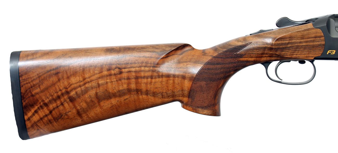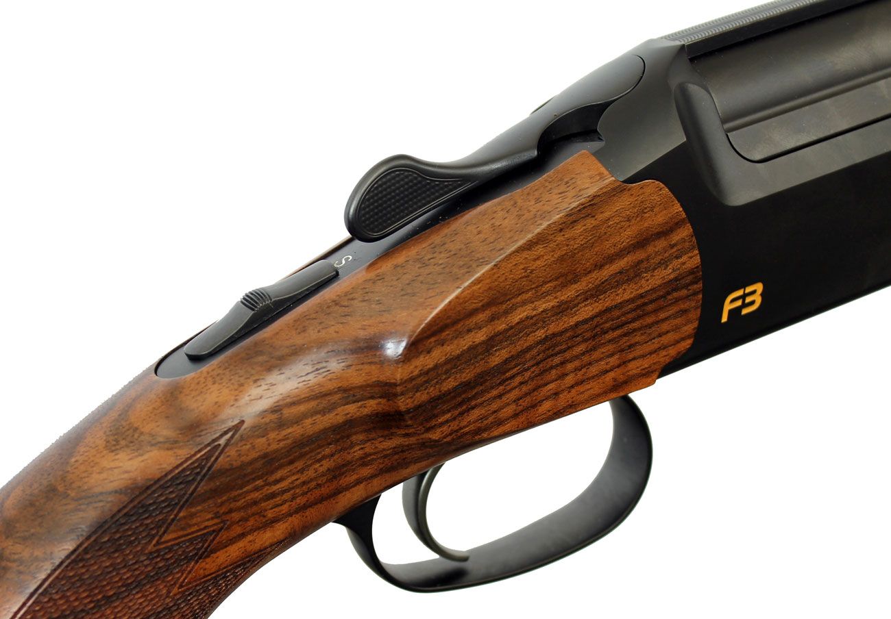 Особенностью конструкции F3 является очень низкая ствольная колодка, что хорошо сказывается на удобстве прицеливания и точности стрельбы, так как подбрасывание стволов после первого выстрела сокращается.