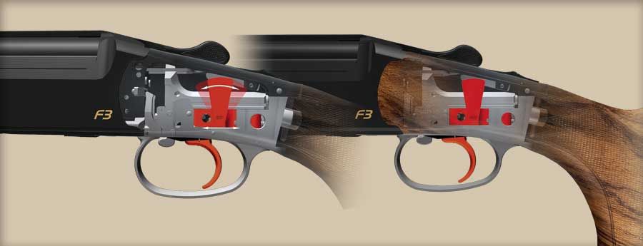 Механика УСМ не зависит от отдачи. Это означает, что в случае, если по каким-то причинам не произошел первый выстрел, второй ствол выстрелит независимо от этого. В F3 имеется также защита от сдвоенных выстрелов.