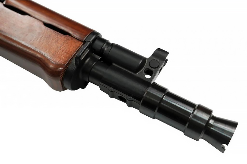 В отдичие от базовой модификации, предлагаемое исполнение оснащено деревянным цевьем. На прикладе установлен амортизирующий затыльник из резины. Отъемный магазин вмещает 8 патронов, горловина приемника магазина увеличена, что упрощает перезаряжание. Безопасность обращения с оружием обеспечивает неавтоматический предохранитель.