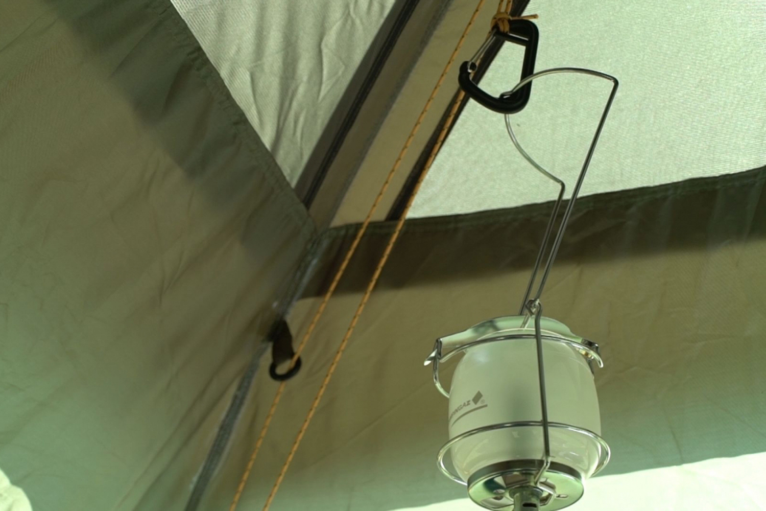 В куполе шатра для улучшения вентиляции — четыре вентиляционных отверстия, защищенных противомоскитными сетками. Сверху вентиляционных отверстий — защитный фартук, предотвращающий попадание воды через эти отверстия во время дождя. При необходимости купольная вентиляция изнутри закрывается ветрозащитной створкой, застегивающейся на клеванты. Для того, чтобы наладить освещение шатра вечером, предусмотрена система из закольцованного шнура с закрепленным на нем карабином. Вам достаточно пристегнуть к карабину лампу или фонарь, поднять его под купол и зафиксировать шнур.