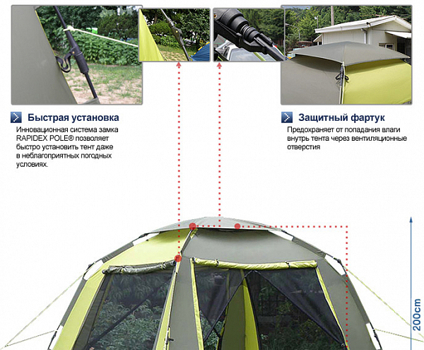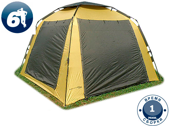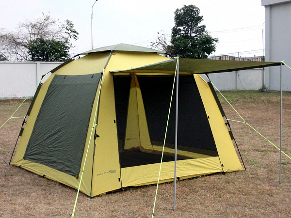 Очень понравился данный шатер своей быстрой сборкой и разборкой. Полностью поставил его минуты за 3-5, что очень радует. Очень хорошая вентиляция, все стороны открываются и от комаров большие москитные сетки. Удобен для транспортировки. Для большой компании самый раз