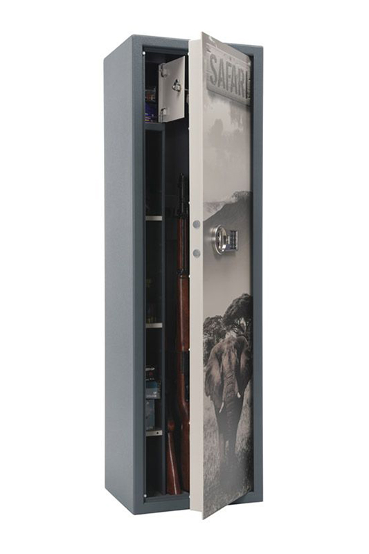 Оружейный сейф Сафари-EL Print предназначен для безопасного хранения охотничьих ружей, боеприпасов и принадлежностей для ухода за оружием. Отвечает требованиям ст.59 Постановления правительства РФ № 814 от 21 июля 1998 года «О мерах по регулированию гражданского и служебного оружия и патронов к нему на территории РФ». Хорошее качество исполнения. Высокий и узкий, легко найдет своё место в любом интерьере.