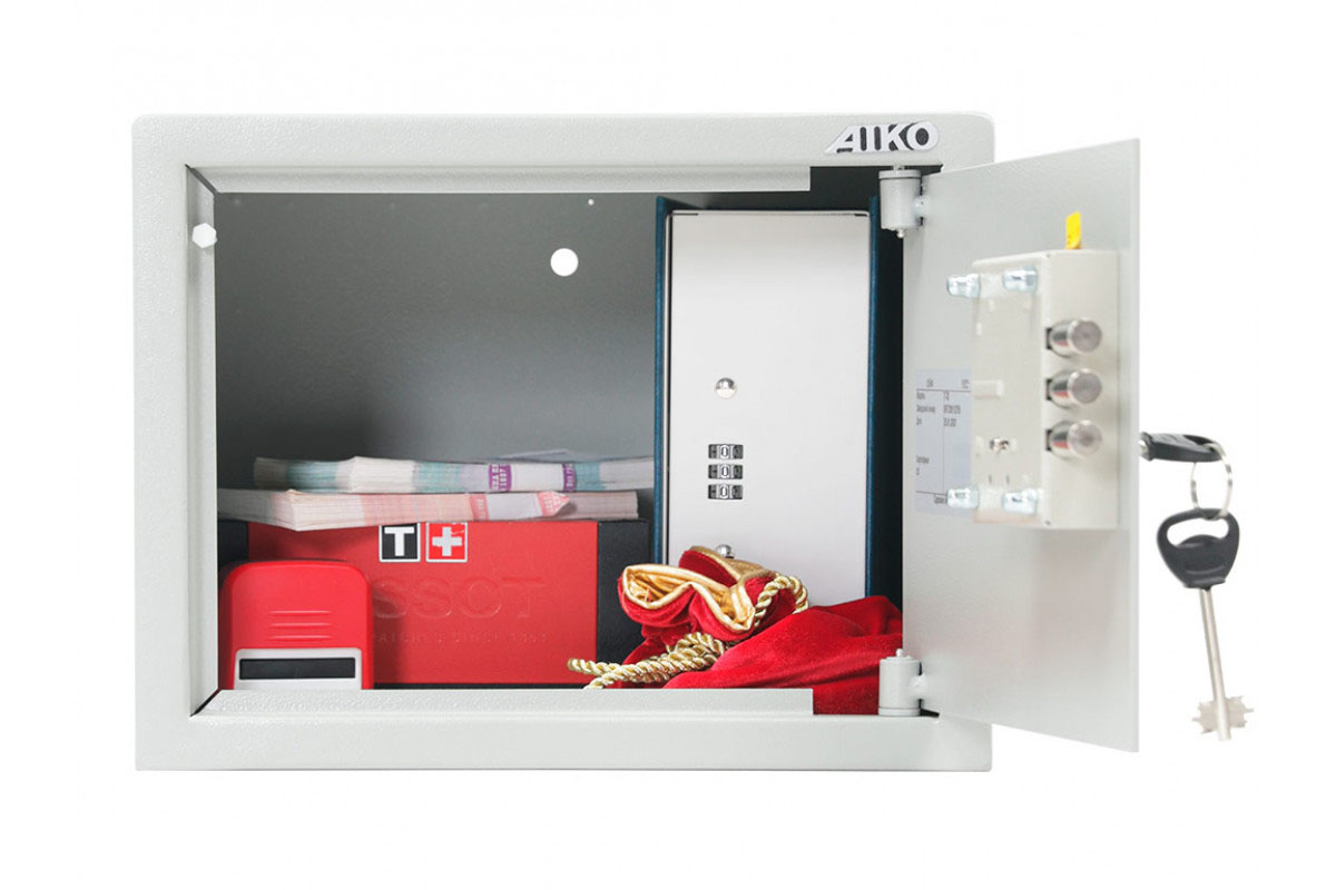 Мебельный сейф предназначен для хранения денежных средств, документов и других небольших ценностей. Конструкция относится к категории мебельных сейфов. Корпус имеет компактные внешние габариты. Для доступа используется ключевой замок. Изделие рассчитано на размещение внутри мебели или в скрытых местах помещения. В задней стенке предусмотрены отверстия для стационарного крепления.