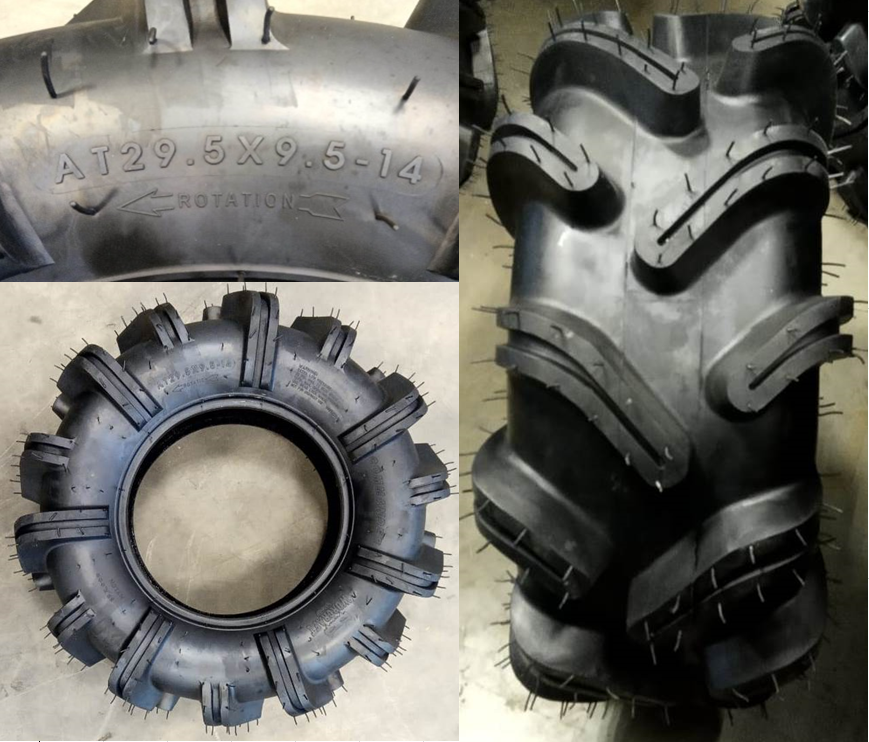 Гигантские покрышки с мощными грунтозацепами в составе которых 6-слойная резина была разработана чтобы быть прочной и устойчивой к проколам, а также она на 1,5 кг легче, чем большинство шин аналогичных в таком виде спорта как Mud Racing.