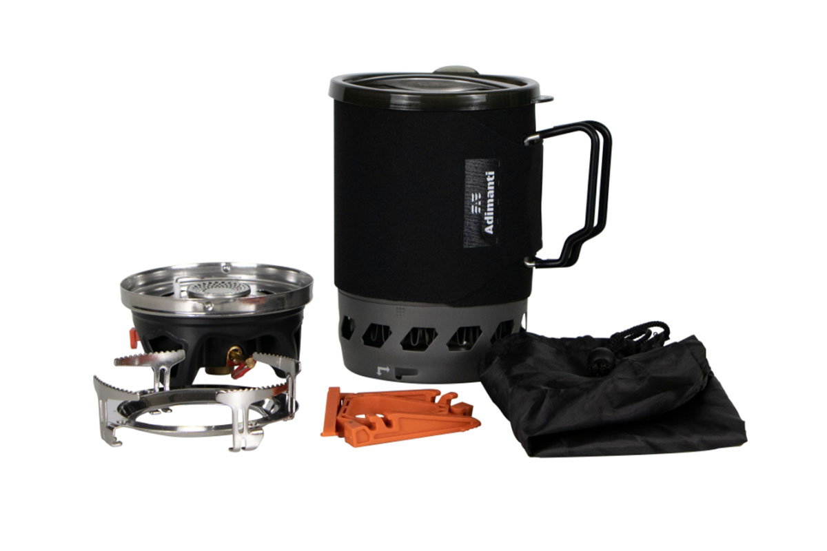 В походных условиях выбор снаряжения определяется его функциональностью и надежностью. Интегрированные системы приготовления пищи представляют собой связку горелки и емкости для варки, сконструированную для совместного использования. Модель Adimanti AD-10 относится к категории такого туристического оборудования. Конструкция включает в себя котелок и газовую горелку, работающую в паре.