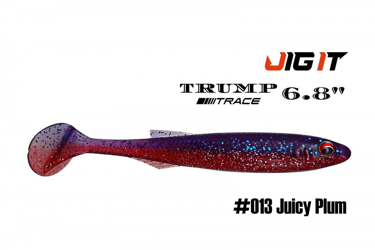 Виброхвост серии Jig It Trump Trace длиной 6.8 дюймов. Приманка имеет массивное тело брусковатой формы. Конструкция хвостовой части рассчитана на низкочастотные колебания. Модель воспроизводит облик кормового объекта.