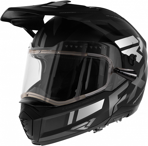 - Сверхлегкая подъемная подбородочная дуга, которую можно регулировать нажатием кнопки, не снимая перчаток
