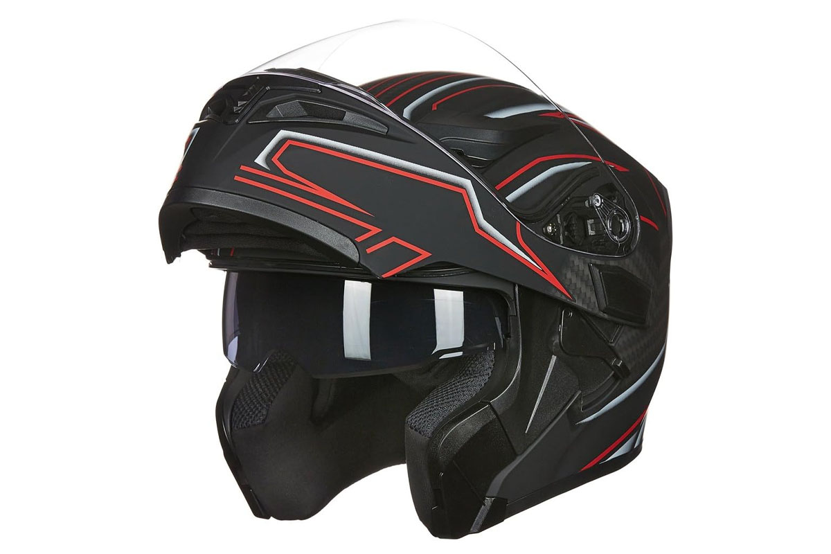 - Двойной визор: Широкий прозрачный визор с антицарапающим и противозапотевающим покрытием, обеспечивающий отличный обзор, и внутренний солнцезащитный визор.