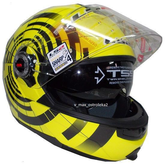FF386 - шлем модуляр с сонцезащитными очками, который получил 4-е звезды по оценка безопасности от независимой лаборатории SHARP. Материал – термопластик. Визор - из поликарбоната, многопозиционный. Внутренняя обивка полностью съемная с возможностью машинной стирки. Удобный и прочный замок ремешка. Система вентиляции-передние воздухозаборник. Шлем снабжен новой системой замены визора. Вес — 1550. Внутренний подклад из искуственной замши.