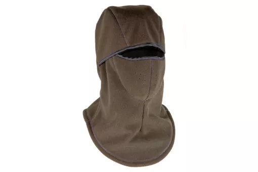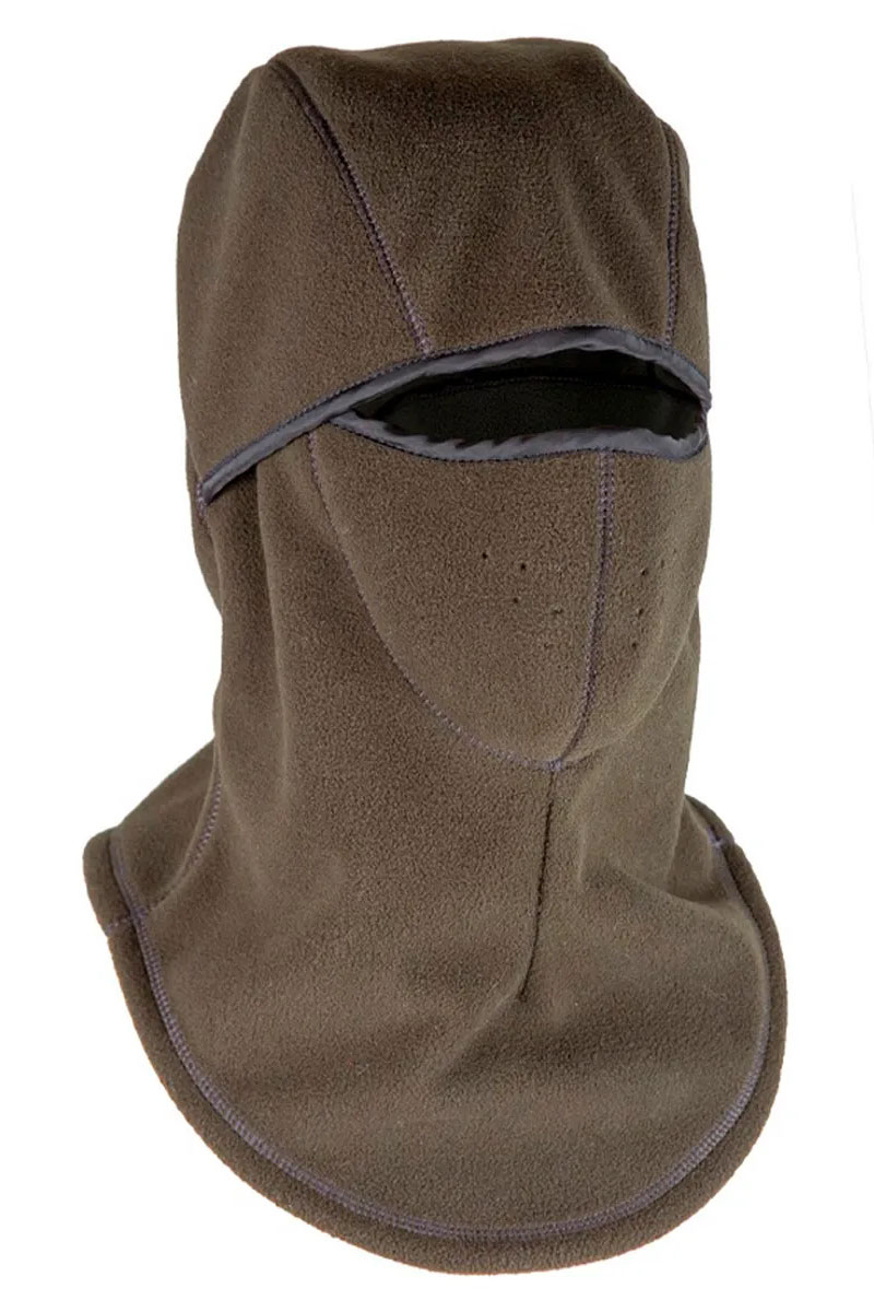 Шлем-маска выполнена из флисовой ткани. Материал обладает ветрозащитными свойствами. Модель предназначена для использования в зимний сезон. Изделие закрывает голову и шею. Конструкция предусматривает ношение под шлем.