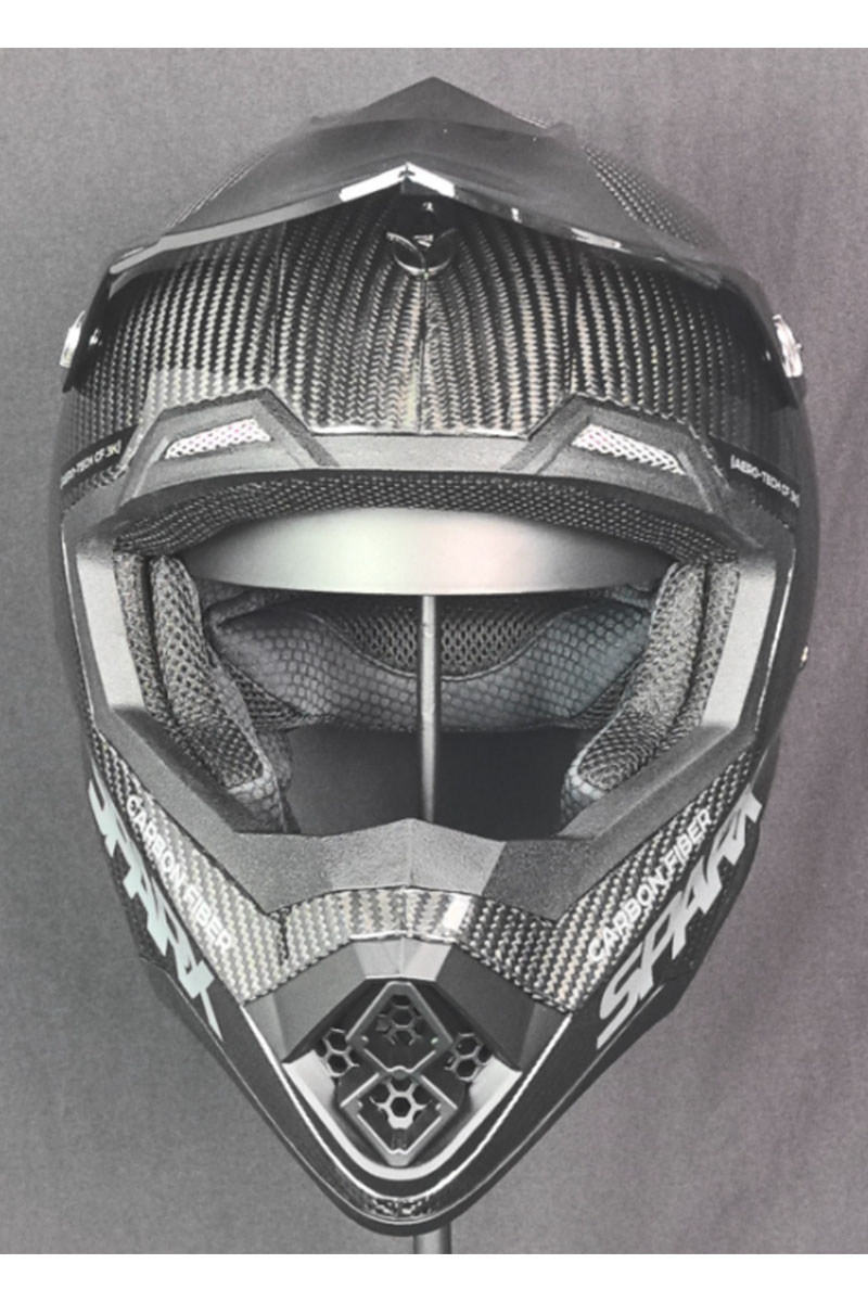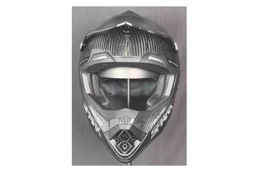 Шлем мотоциклетный с внешней оболочкой из карбона 3K. Подходит для использования с мотоциклом, квадроциклом, скутером, снегоходом или питбайком. Внутренняя отделка выполнена из гипоаллергенных материалов. Конструкция включает эргономичный отсекатель дыхания. Для фиксации на голове используется застежка типа D-rings. Козырек шлема является съемным. Шлем соответствует стандарту безопасности ECE 22.06. Вес модели составляет 1100 ± 50 грамм.