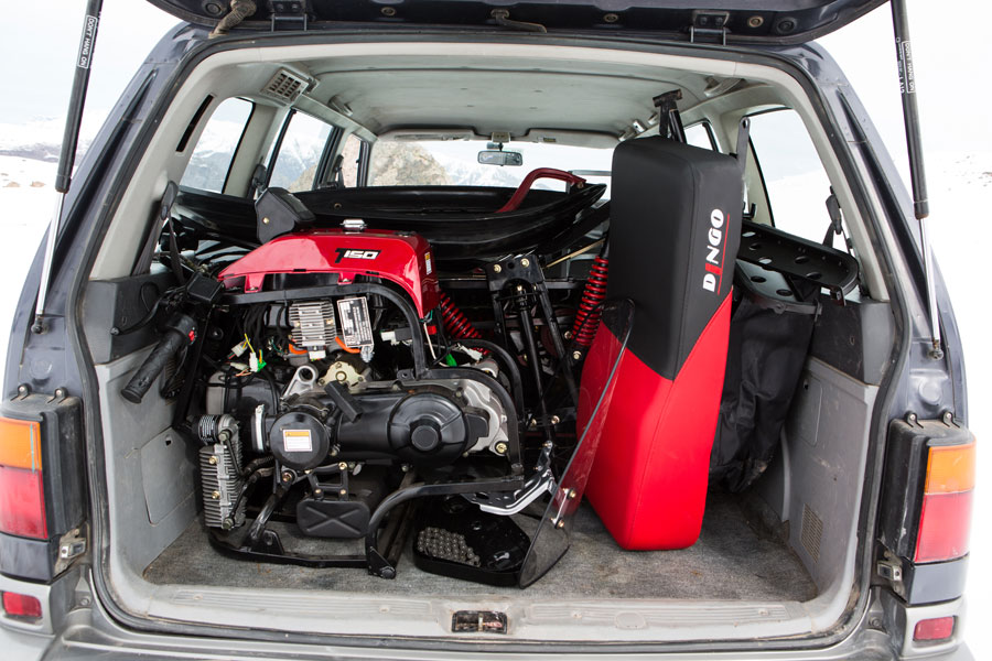 Снегоход Динго T150 — это уже третья модернизация данной модели, проверенной временем. На обновленном до неузнаваемости Dingo установлен более мощный, чем на предыдущих версиях, 4-тактный движок с принудительным воздушным и дополнительным масляным охлаждением объемом 149 кубических сантиметров. Удлиненная до 2 626 мм резинотканевая армированная гусеница, с увеличенными до 23 миллиметров грунтозацепами, и усовершенствованная, принципиально новая, катково-склизовая подвеска с двумя амортизаторами, обеспечивают снегоходу отличную проходимость.